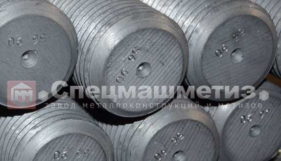 Материал для шпилек - круглая сталь 09Г2С-6 диаметром 60 мм и готовые шпильки подвергнуты механическим испытаниям. Результаты испытаний подтвердили соответствие требованиям стандартов.